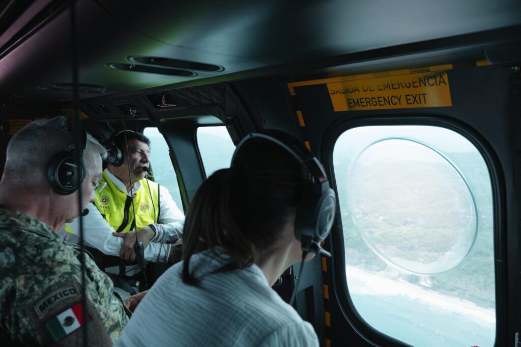 | Acompañaron a la Presidenta de México, la secretaria de Gobernación, Rosa Icela Rodríguez Vázquez; el gobernador de Oaxaca, Salomón Jara Cruz; el secretario de Defensa Nacional, general Ricardo Trevilla Trejo; el secretario de Marina, almirante Raymundo Pedro Morales Ángeles; el secretario de Infraestructura, Comunicaciones y Transportes, Jesús Antonio Esteva Medina; la secretaria de Bienestar, Ariadna Montiel Reyes; el secretario de Salud, David Kershenobich Stalnikowitz; la coordinadora general de Asuntos Intergubernamentales y Participación Social de la Presidencia de la República, Leticia Ramírez Amaya; la coordinadora nacional de Protección Civil, Laura Velázquez Alzúa; el director general de la Comisión Nacional del Agua (Conagua), Efraín Morales López; y el director general del IMSS Bienestar, Alejandro Svarch Pérez. |