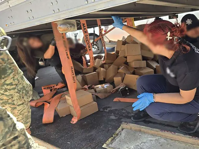 El aseguramiento de la metanfetamina se realizó en un puesto de inspección, en el Boulevard 2000, en la colonia Hacienda de Tijuana, cuando se le marcó el alto a un tractocamión acoplado a una caja refrigerada.