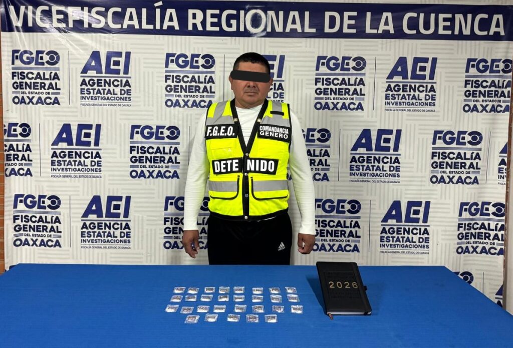 Oaxaca de Juárez, Oax., a 19 de enero de 2026. Como parte de las acciones estratégicas para combatir el narcomenudeo, la Fiscalía General del Estado de Oaxaca (FGEO) en coordinación interinstitucional, dio cumplimiento a una orden de cateo que se realizó de manera coordinada en el municipio de San Juan Bautista Valle Nacional de la región de la Cuenca, logrando la detención de una persona y el aseguramiento de diversas sustancias ilícitas.